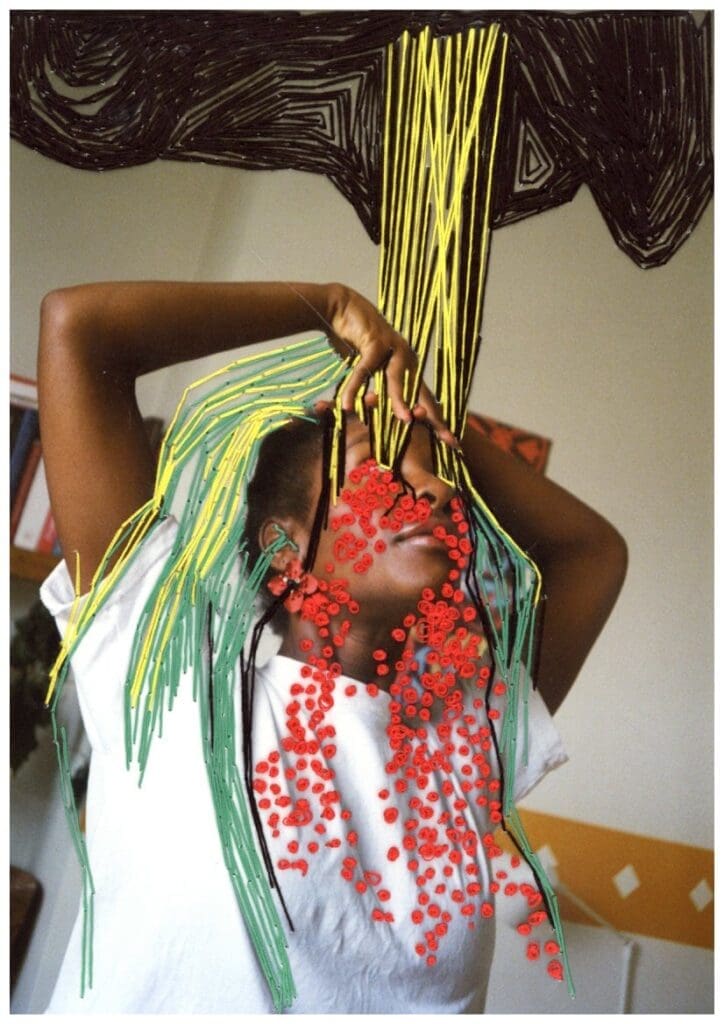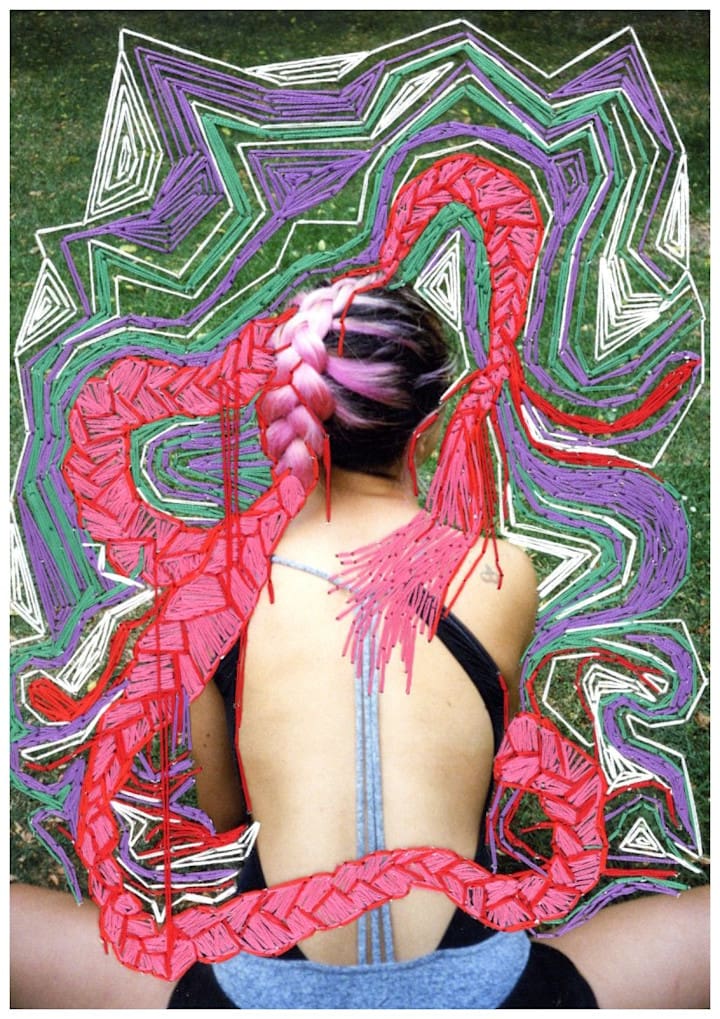 In terms of embroidering over photography it all started because I came across this artist called Maurizio Anzeri. He embroiders over vintage photography from the Victorian era, but he embroiders very geometric shapes that accentuate and emphasise an element of like the portrait, whether it be someone’s face or a body part. It made me break away from my idea of needlework being just stuck to fashion and it made me think of it in more of a visual art context. You can change things when something is handmade and input your expression so I started treating, embroidering and doodling on top of notebooks and magazines.
